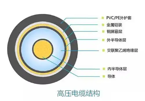 ----高壓線由內(nèi)至外可分為導(dǎo)體—內(nèi)半導(dǎo)體層—絕緣層—外半導(dǎo)體層—金屬鎧裝層;
