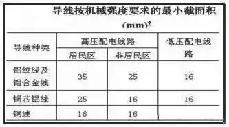 在我國要求空架導線容許采用的最 低橫截面如下圖所顯示。如測算出橫截面小于表格中要求標值,也需要按表里標值采用。
